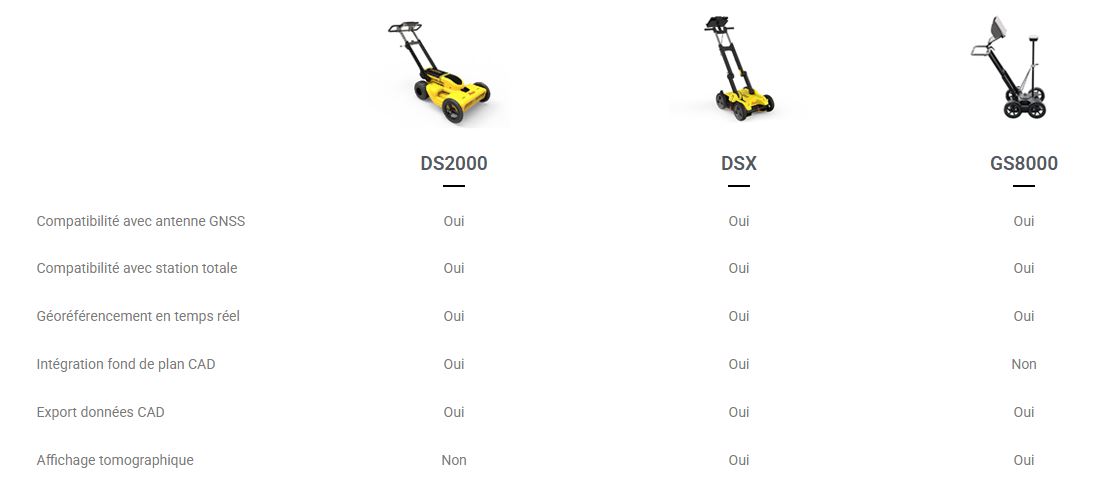 Nous vous avons préparé un comparatif technique et détaillé au sujet de 3 géoradars phares du marché : Leica DSX, DS2000 et Proceq GS8000 !