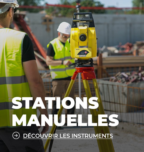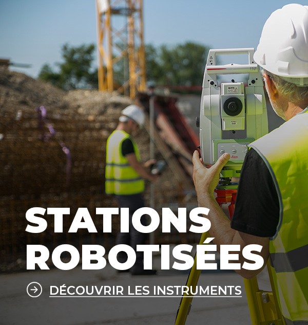 La station manuelle est une solution d'implantation et de relevés relativement simple d'utilisation. Elle nécessite cependant l'intervention de 2 géomètres sur le terrain. La station totale robotisée, quant à elle, est capable de suivre un prisme automatiquement, elle demande plus de formation technique, mais un seul opérateur est nécessaire.