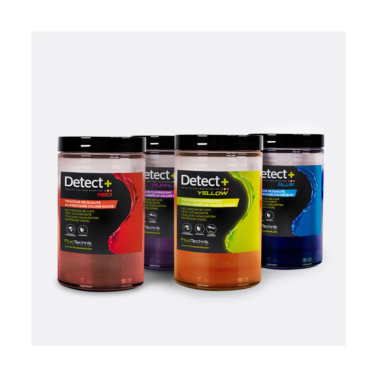 - Les couleurs YELLOW et PURPLE fluorescentes avec utilisation d'une lampe UV 365 nm de chez Fluotechnik