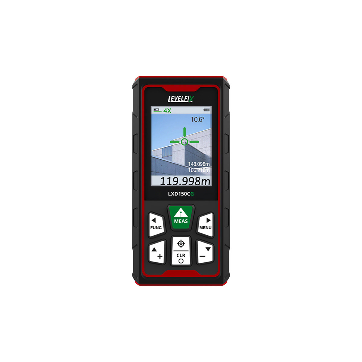 Le télémètre Levelfix LXD150CG est un télémètre laser avec un faisceau vert adapté aux mesures d'intérieur.